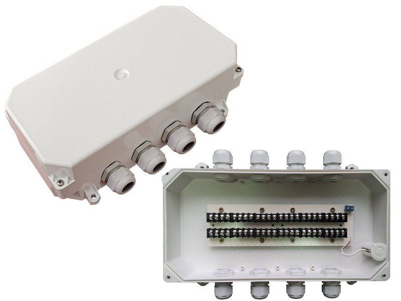 Коробка соединительная, корпус из АБС-пластика, 8 пластиковых каб.вводов под кабель Ø 11...17 мм, 24 клеммы, барьерный клеммник Т31 (до 2.5мм.кв.; 300В/30А), тампер (датчик вскрытия); t-раб. -55…+60 °С, IP66/67, габ.размеры без каб.вводов 300х150х95 мм
