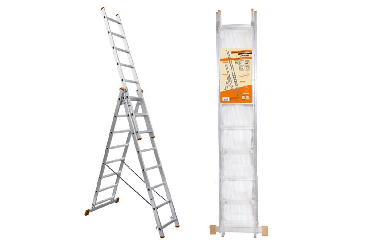 Лестница алюминиевая, 3 секции по 10 ступеней, h=6270 мм.