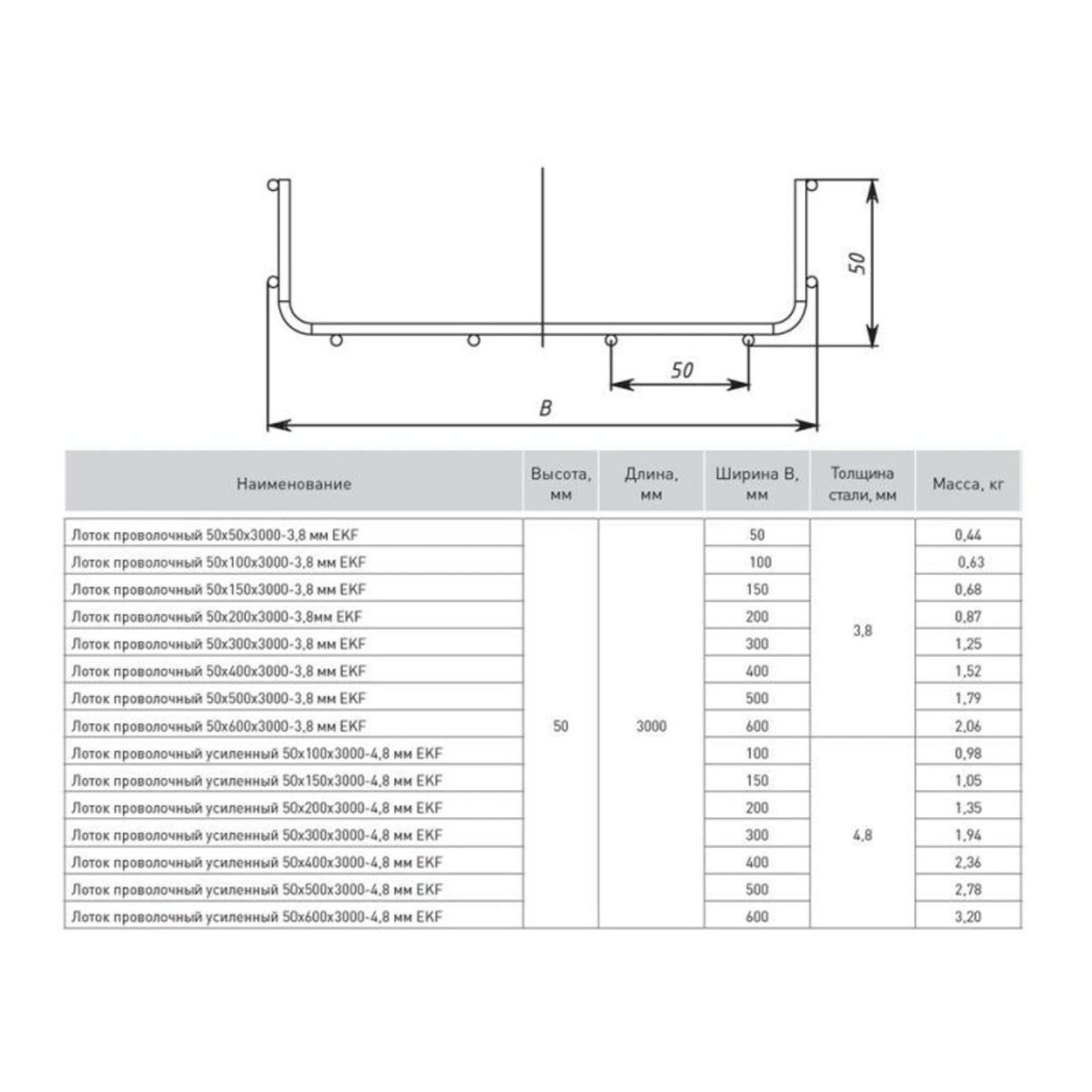 Лоток проволочный усиленный 50х400 L3000 4.8мм EKF LP50400-4.8
