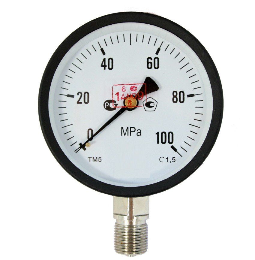 Манометр показывающий 0-100 бар. Устанавливается на модули газового пожаротушения для контроля давления в баллонах.