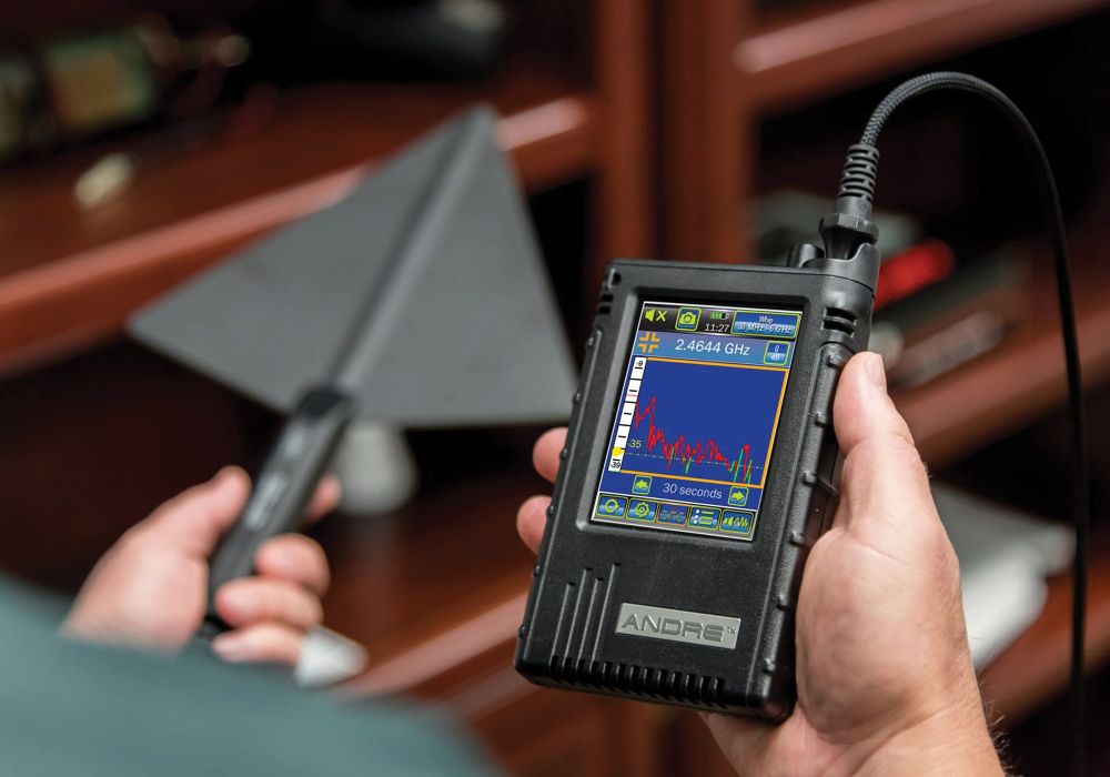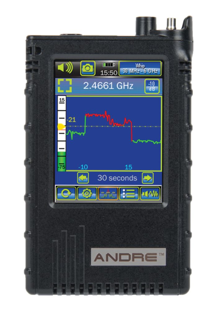 Многофункциональный прибор в ANDRE в САМОЙ полной комплектации создан для нахождения источников радио частотного сигнала в близкой зоне приема. В нем сочетаются: детектор электро магнитного поля широкополосный, приемник ИК-диапазона, а также набор зондов для проверки проводных линий и оценивания виброакустической оснастки помещения. Прибор может находить и идентифицировать устройства с Wi-Fi, Bluetooth, сотовой связью и проч. Имеет удобный сенсорный экран 3.5 дюйма и USB порт для передачи данных. ANDRE позволяет быстро оценить радиообстановку и выступает в качестве отличного дополнения к спектроанализатору.