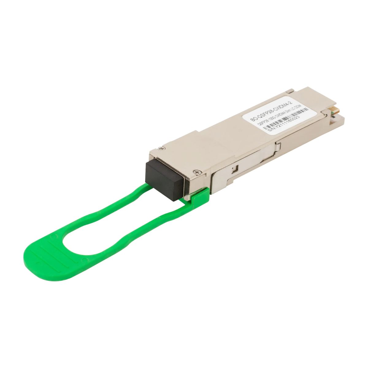 Двухволоконный оптический модуль с форм-фактором QSFP28 для 100G Ethernet, соответствует стандарту 100GBASE CWDM4. Предназначен для работы в одномодовом оптическом волокне (Single mode fiber, SMF), максимальная дальность 2км, оптический бюджет 5дБ, duplex LC коннектор, соответствие рекомендациям 100G 4WDM-2 MSA