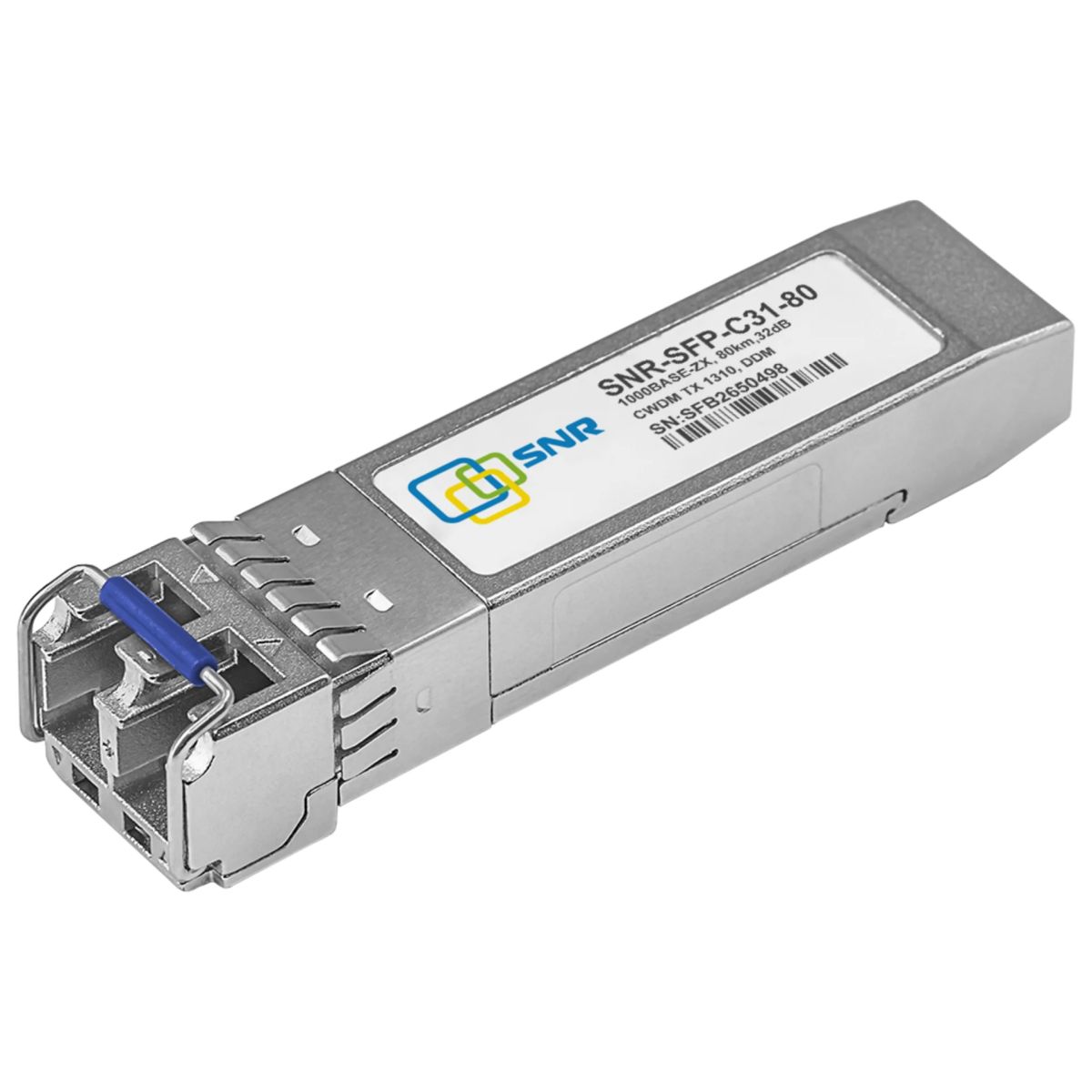 Двухволоконный оптический CWDM модуль с форм-фактором SFP для 1G Ethernet, соответствует стандарту 1000Base-ZX. Предназначен для работы в одномодовом оптическом волокне (Single mode fiber, SMF), максимальная дальность 80км, оптический бюджет 32dB, duplex LC коннектор.
