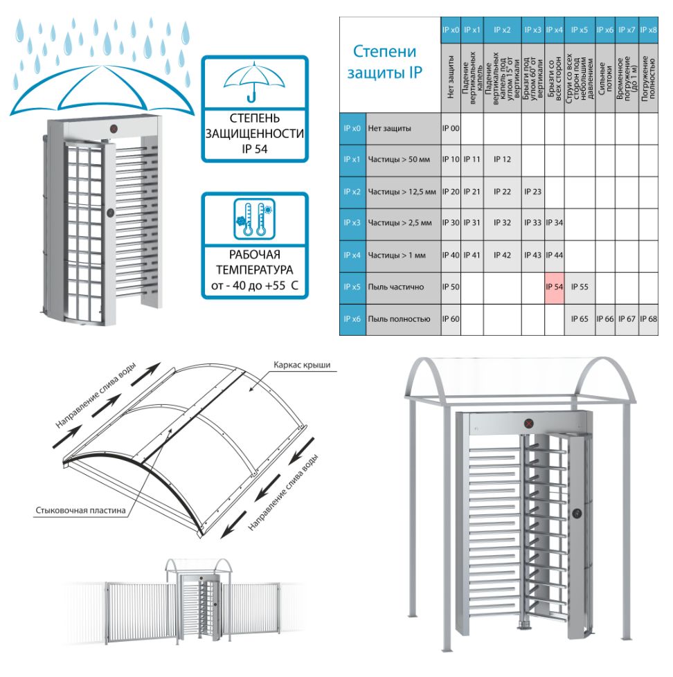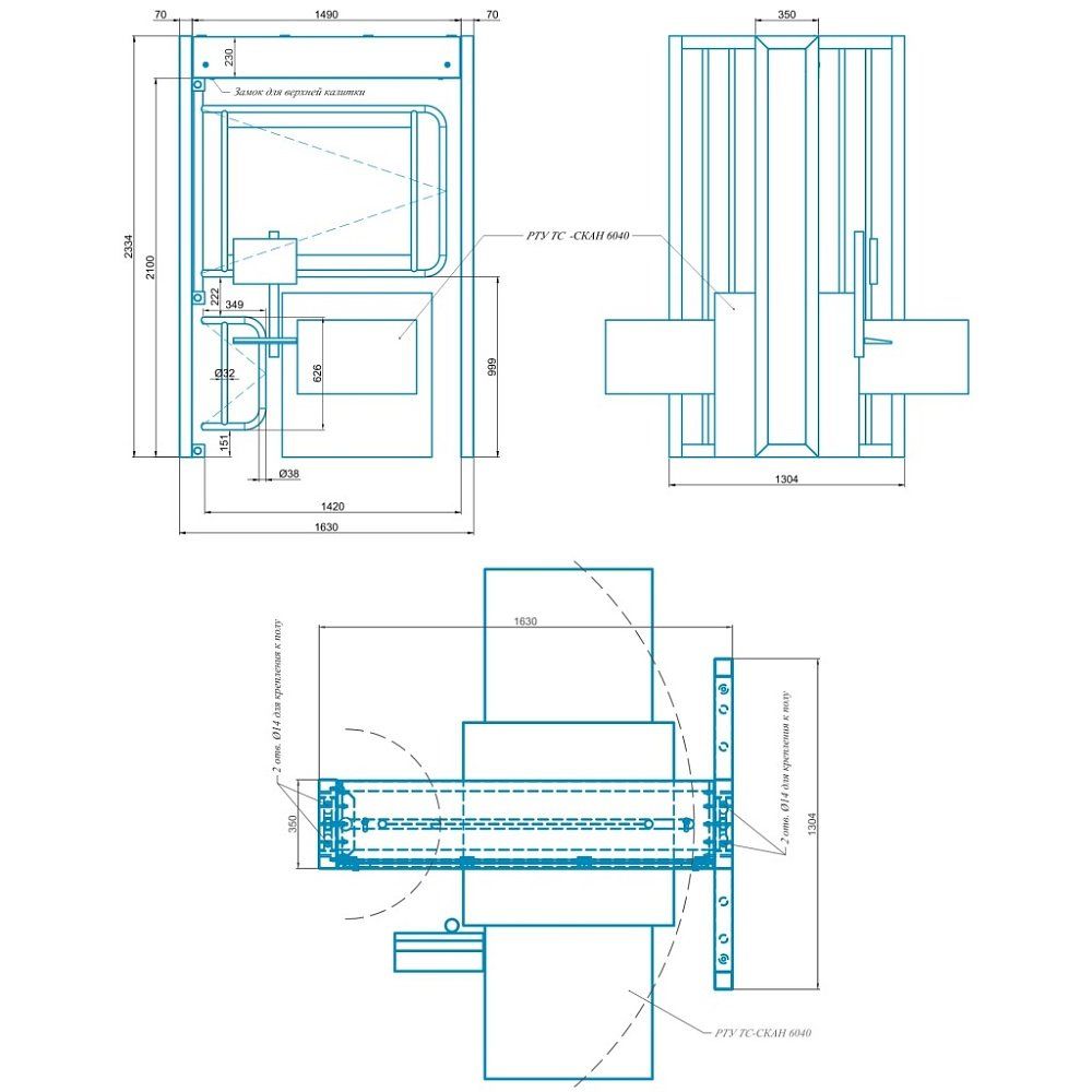 Модуль имеет стандартные габаритные размеры и аналогичную турникетам систему крепления. Есть возможность индивидуального изготовления по чертежам заказчика.