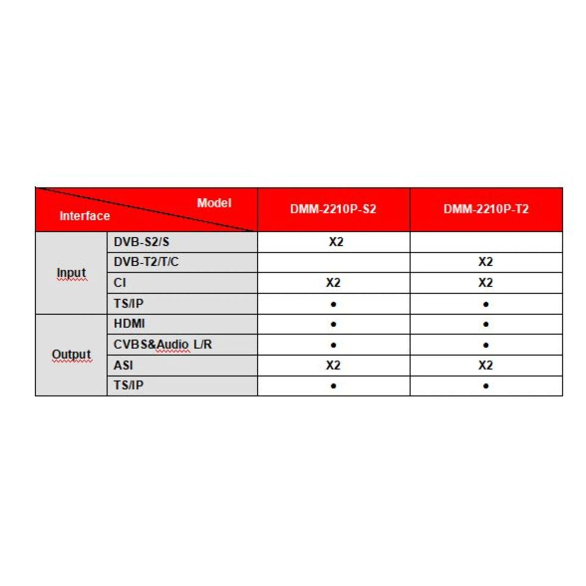 Модуль DVB-S/S2 демодулятора DMM-2210P-S2 является профессиональным приёмником-декодером и позволяет принять сигнал 2 транспондеров DVB-S/S2, дешифровать принятый транспортный поток при помощи CAM модулей, установленных в 2 CI слота, передать дешифрованный транспортный поток на выход ASI и TSoIP, а также декодировать одну из программ в принятом транспортном потоке и выдать сигнал на аналоговый выход CVBS и цифровой выход HDMI. Управление модулем осуществляется через порт Ethernet либо с помощью специального устройства управления.