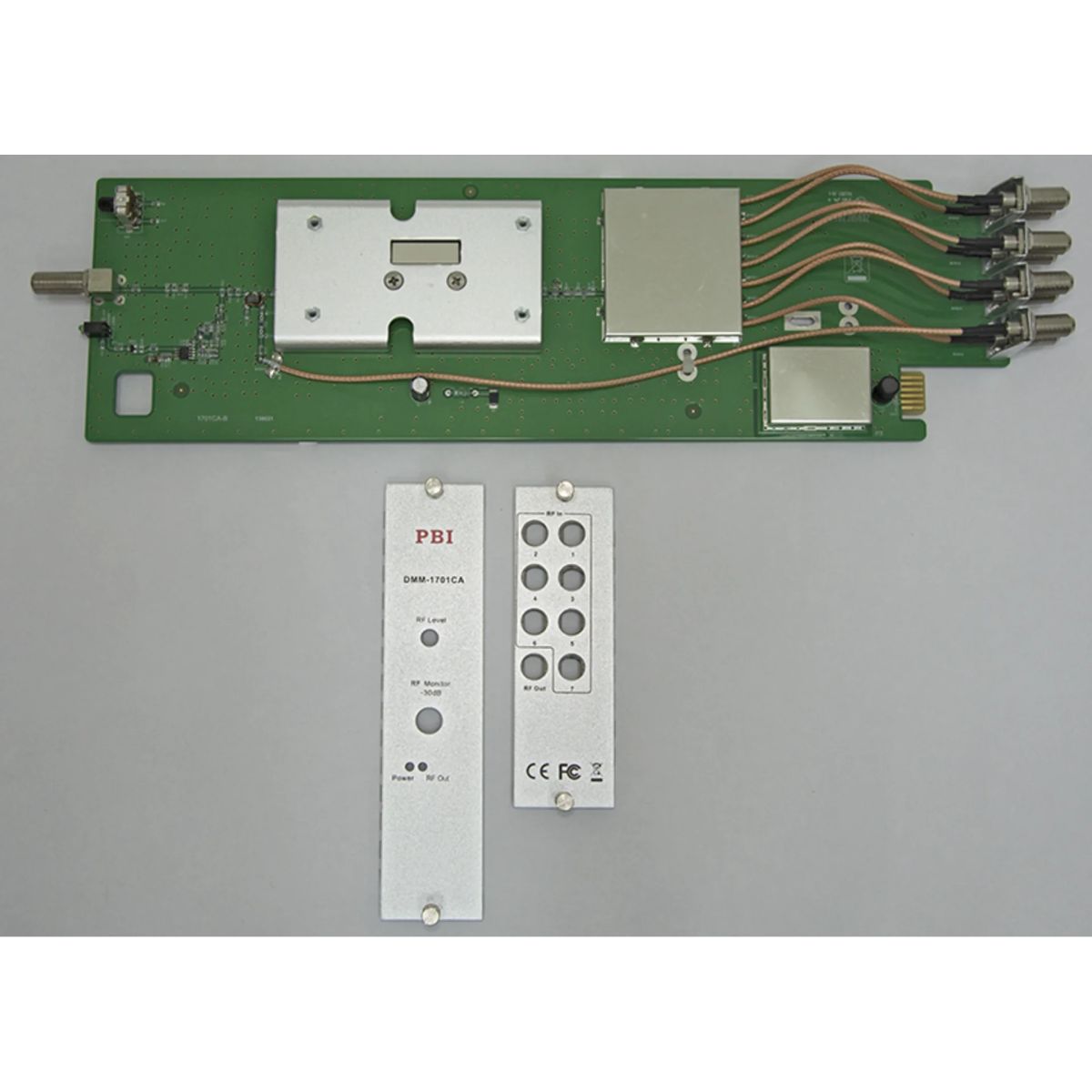 Модуль сумматора и усилителя DMM-1701CA позволяет сложить 7 ВЧ сигналов в полосе 48-860 МГц на один выход с усилением до 110 дБмкВ на каждую несущую (ручная регулировка на передней панели модуля). В модуле отсутствуют интерфейсы управления.