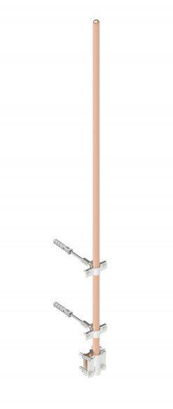 Молниеприемник с держателями устанавливается на вертикальную поверхность (например, стена, дымовая труба). В комплект молниеприемника входит установочный соединитель для подключения токоотвода. Длина - 1,5 метра. Материал стержня - медь, материал держателей и соединителя - нержавеющая сталь.