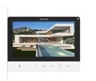 Монитор видеодомофона 7 дюймов, с поддержкой форматов CVBS и 720p/1080p (AHD/CVI/TVI), сенсорные кнопки, разрешение 1024 x 600. Режим «hands free» или разговор через трубку. Адаптирован для многоквартирных домофонов. Запись MP3 для мелодий вызова. Дополнительный выход HOOK/GATE, SIREN. Запись фото или видео на microSD карту до 256 ГБ (в комплект не входит). Запись по детектору движения, по одному каналу. Питание 100-240 В, 50-60 Гц (блок питания встроенный).