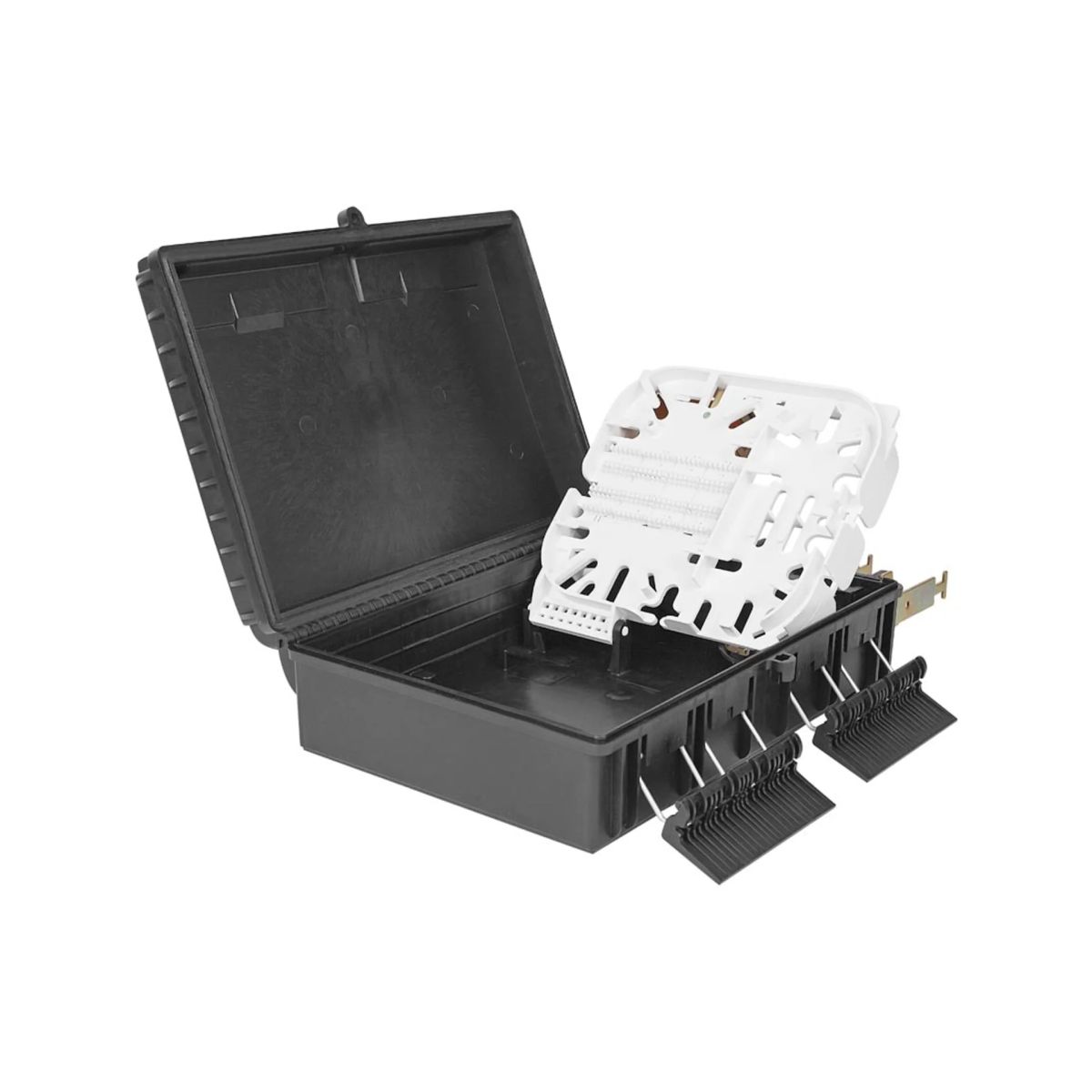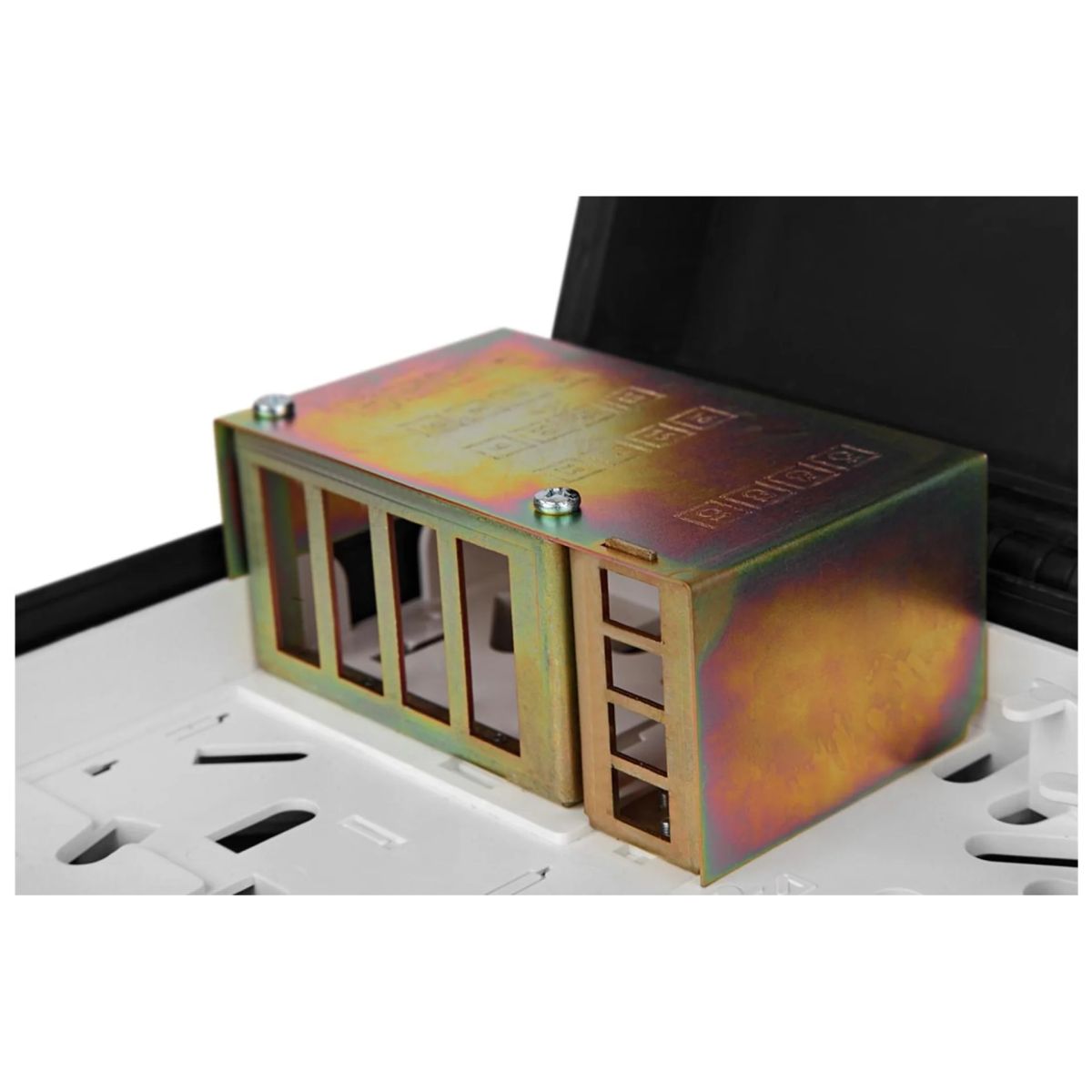 Выполнена из пластмассы и имеет пыле-брызгозащищенную тупиковую конструкцию (ввод ОК и вывод ШОС производится с одной стороны).