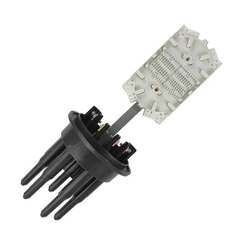 Круглые патрубки на оголовнике муфты изначально герметичны и имеют конусную ступенчатую форму с плавным переходом диаметра, что позволяет отрезать патрубок в определенном месте и подобрать отверстие максимально близкое к диаметру вводимого ОК.