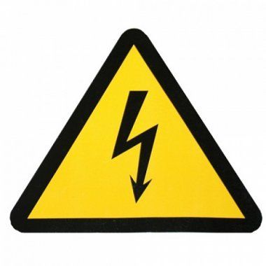 Знак безопасности "Молния" наклейка треугольная, габ.размеры 25х25х25 мм