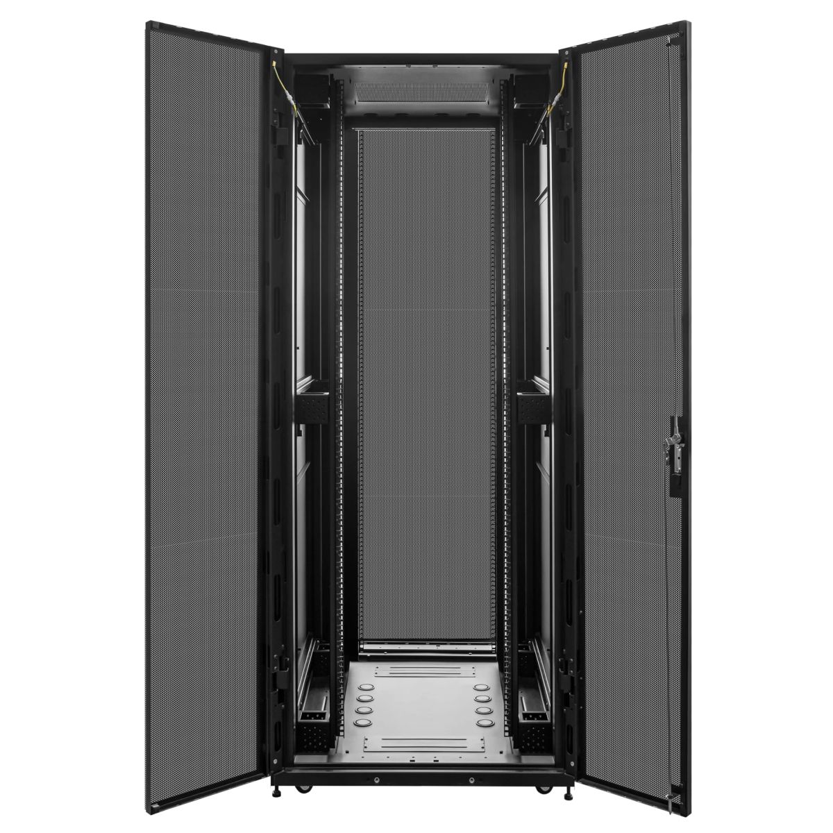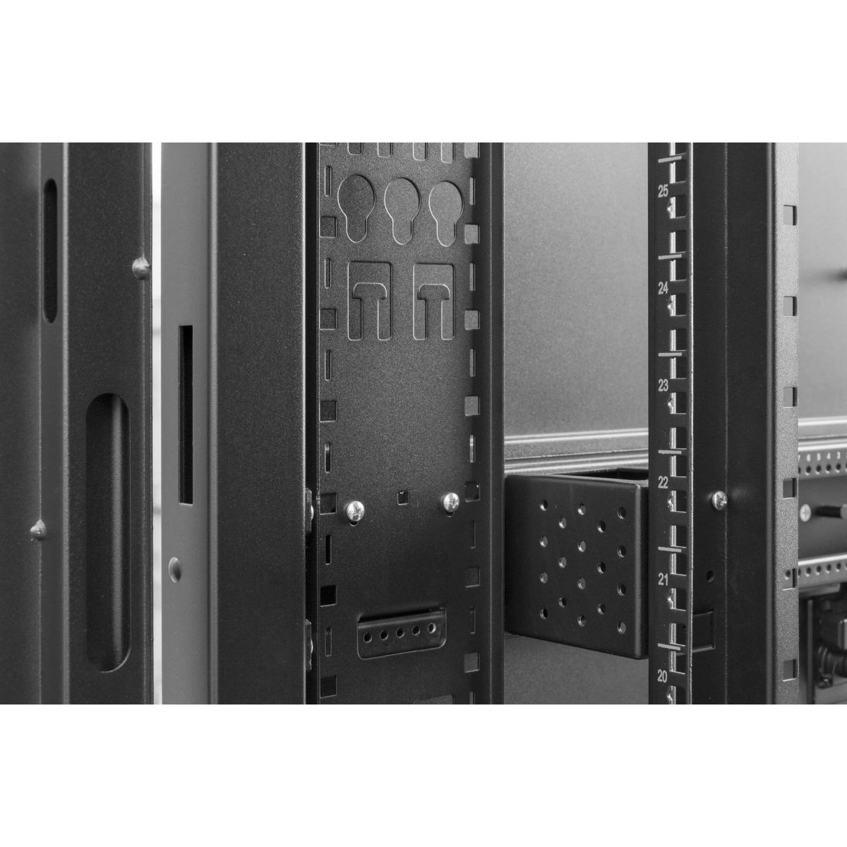 Вертикальные плоские органайзеры входят в комплект шкафа. Они имеют петли для быстрого монтажа вертикальных блоков распределения питания (PDU).