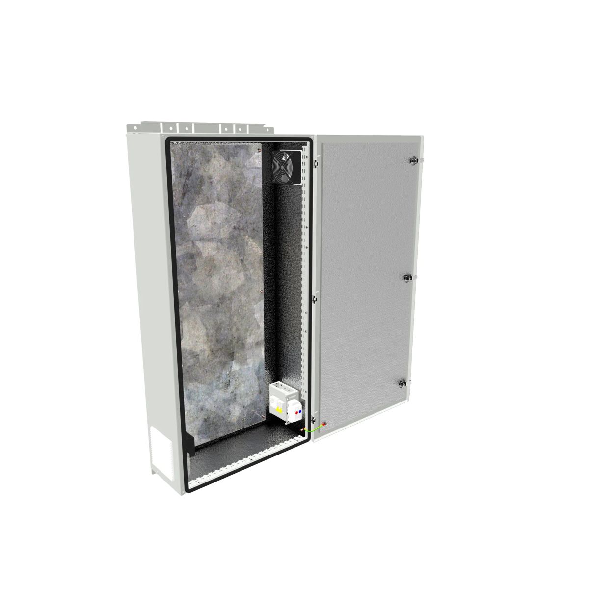 В шкафу предустановлен вентиляторный модуль, с возможностью установки на "вдув" или "выдув". Защитная решетка позволяет предотвратить не только механические воздействия, но и попадание влаги внутрь шкафа. Предустановленные термостаты и нагревательный элемент позволит сохранить температурный режим работы оборудования в зимний период.