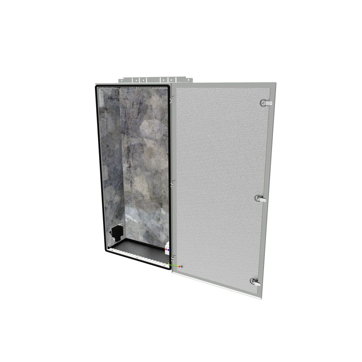 Корпус шкафа имеет сварную металлическую конструкцию, внутри покрыт термоизоляционным негорючим материалом. В основании шкафа предусмотрена съемная заглушка для ввода кабеля.