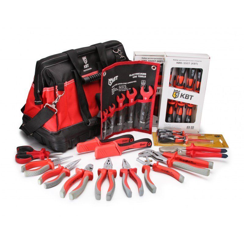 Набор электромонтажника для работы под напряжением до 1000 В в сумке.