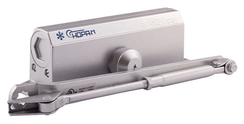 Универсальный дверной доводчик уличный морозостойкий, предназначен для дверей левого и правого открывания. Устанавливается на тяжёлые входные двери весом от 80 до 120 кг. Данная модель разработана с учетом особенностей эксплуатации в российских условиях. Диапазон рабочих температур от –45° до +60°C.