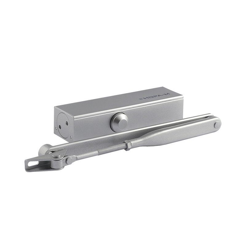 Доводчик в плоском корпусе для дверей весом 40 - 120 кг, двухскоростной, с быстроразъемной рычажной тягой. Класс доводчика EN2-6, установочный размер 60х38 мм, габариты 180х51х39 мм, -45...+60 °С, цвет - серебро.
