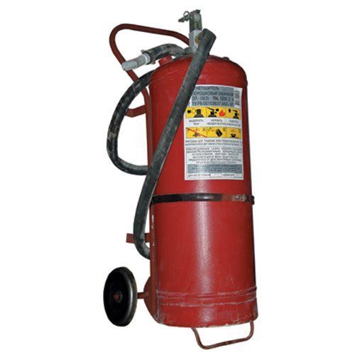 Огнетушитель порошковый закачной, вместимость корпуса 35.4 л, масса заряда порошка 35±1,75 кг, длина струи 6 м, продолжительность подачи 20 сек, огнетушащая способность 233В/6А, t-раб.-50…+50°С, длина шланга 3 м