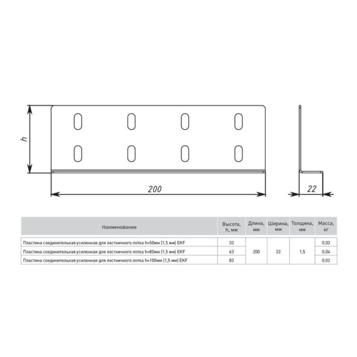 Пластина для лестн. лотка соединительная усилен. H=80мм EKF cylt8015