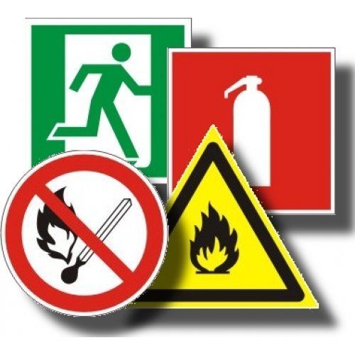 Знаки безопасности изготавливаются на самоклеящейся пленке ПВХ. Изображение наносится специальными химически стойкими трафаретными красками, устойчивыми к воздействию неблагоприятных условий (солнце, вода, атмосферные осадки)