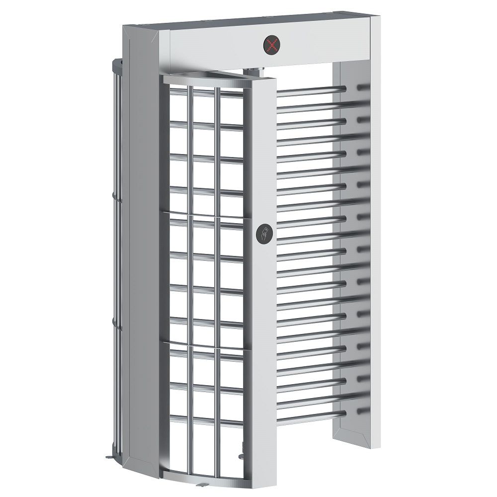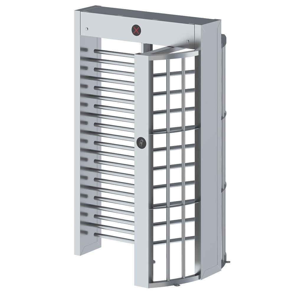 Универсальное и практически всепогодное устройство оснащено двумя электронными считывателями данных с карт. Полноростовая модель с калиткой обеспечивает достаточно высокую пропускную способность (20-35 человек за минуту), имеет блокировку обратного хода и разблокировку на случай аварии.
