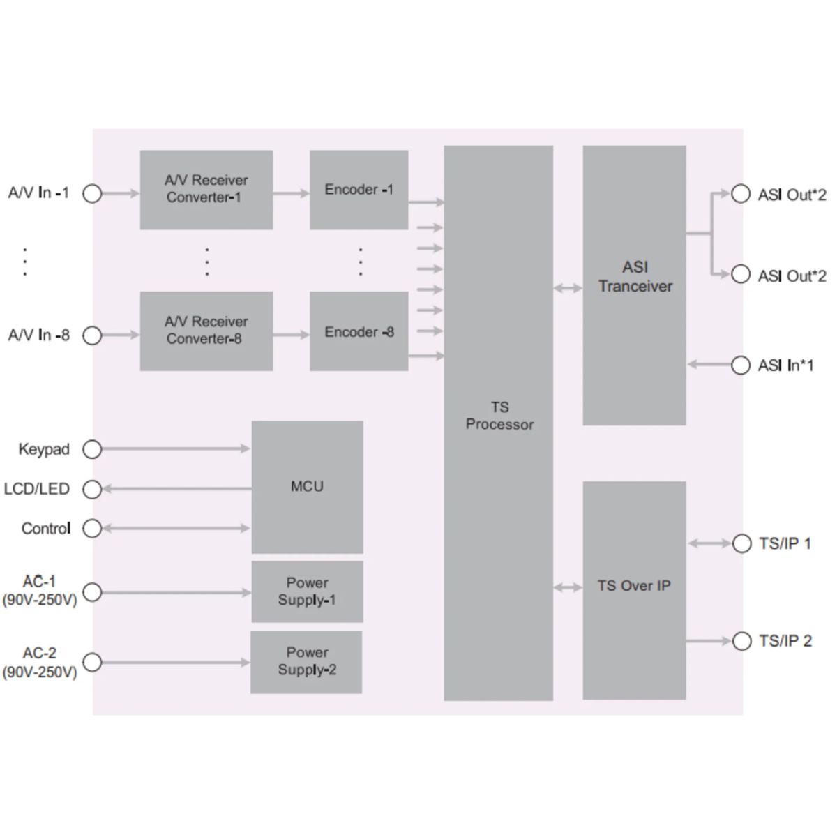 | TS/IP, Режим 2: только выход, 128 IPTV потоков | |