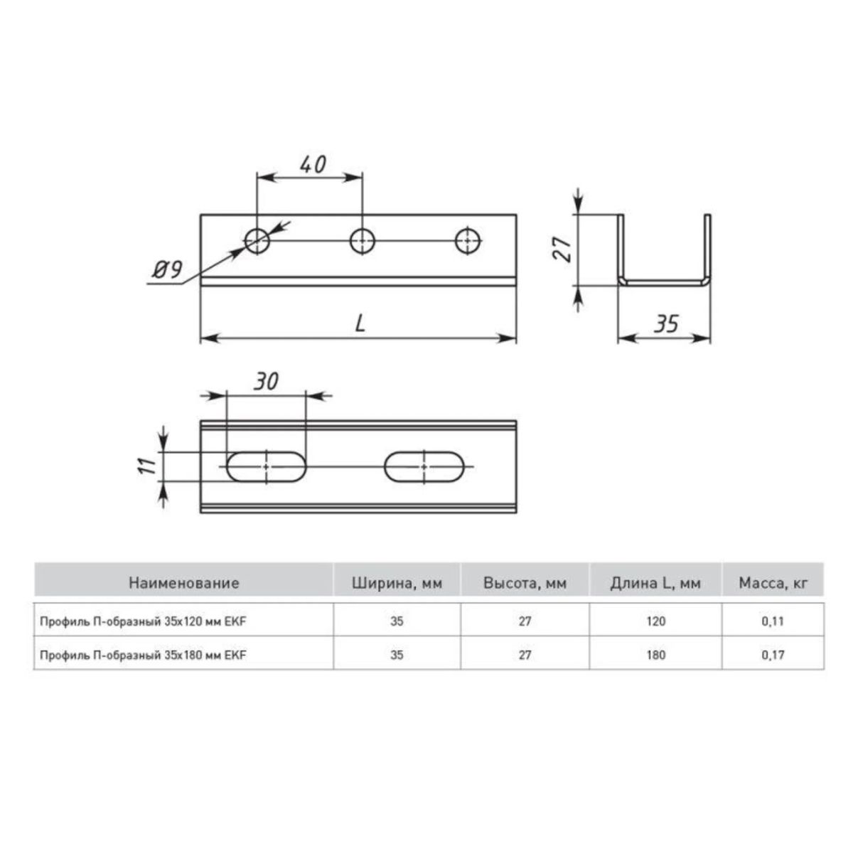 Профиль П-образный 35х120 1.5мм PROxima EKF pp35120-1.5