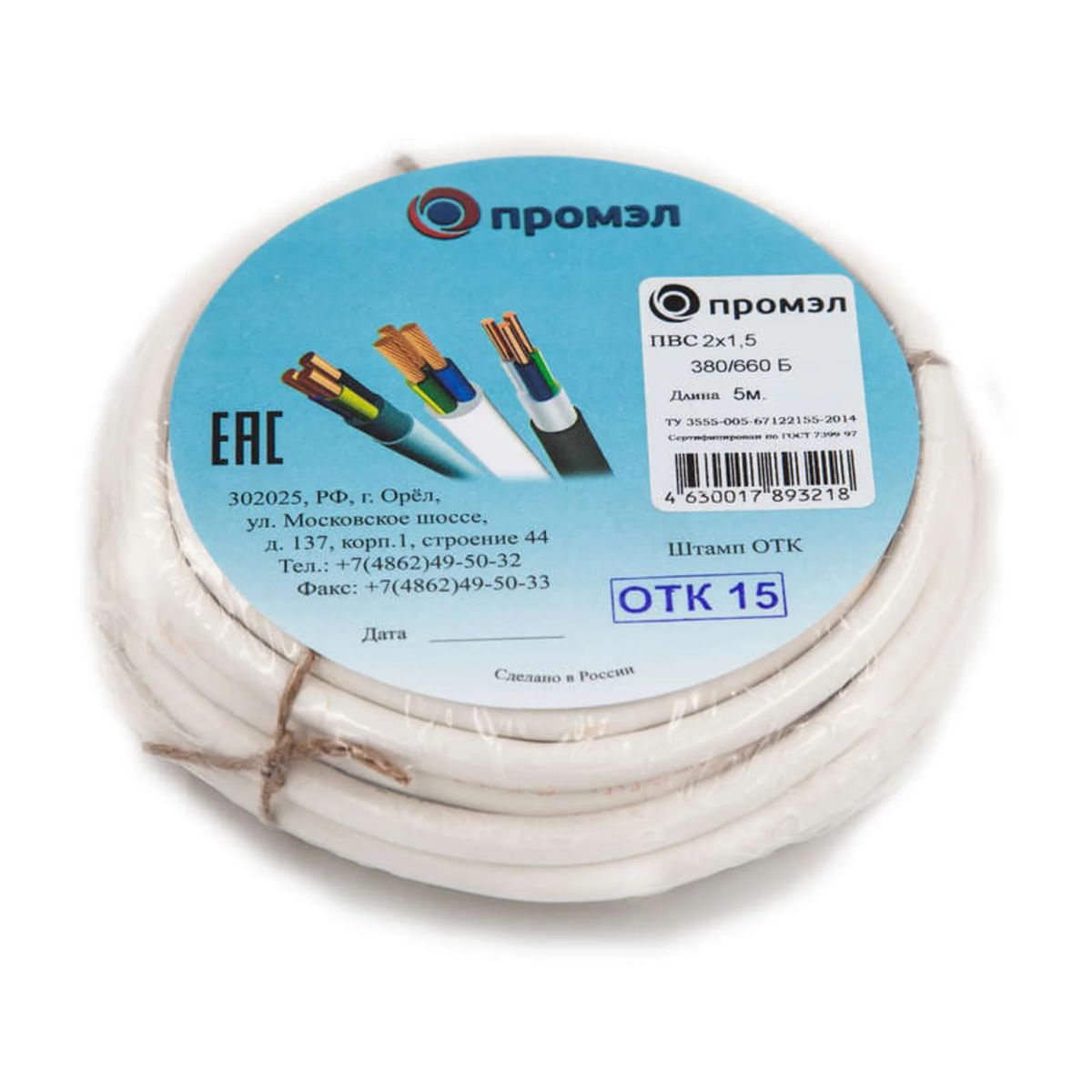 Провод ПВС 2х1.5 Б (бухта 5м) (шт) Промэл 13321480