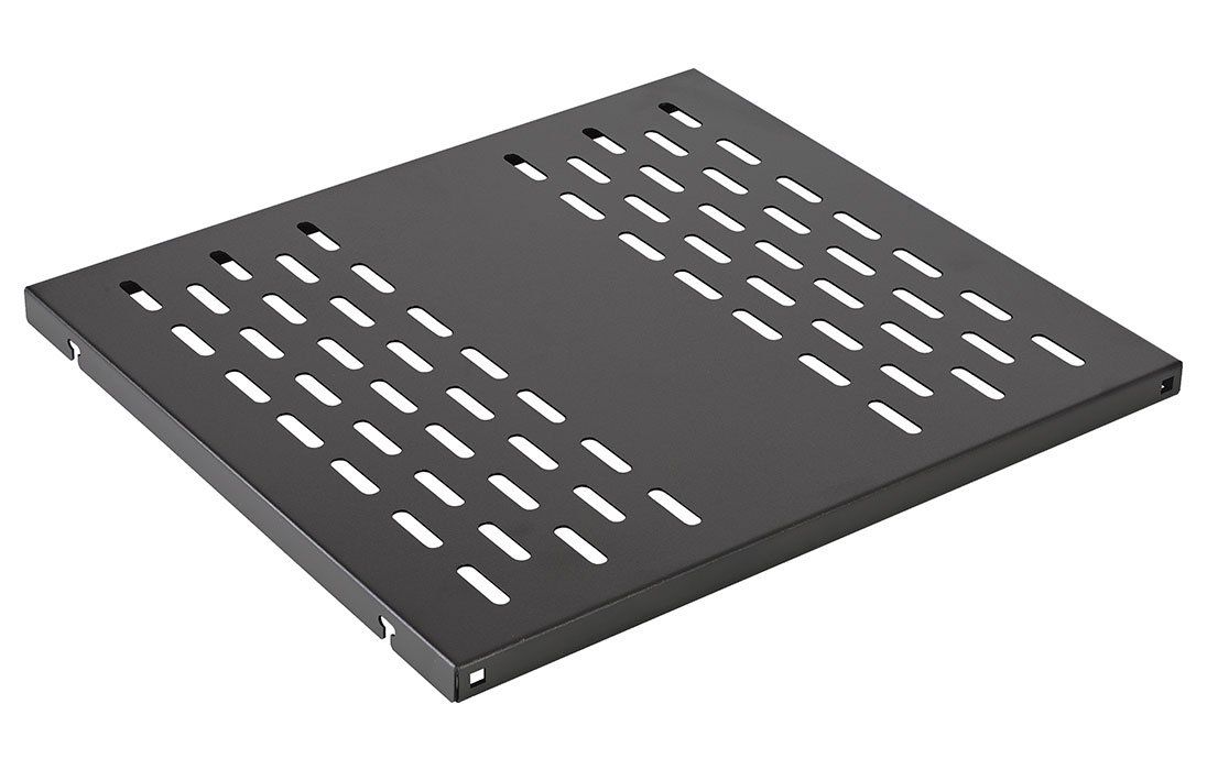 Полка стационарная перфорированная, усиленная, нагрузка до 150кг, глубина 750мм, цвет черный.