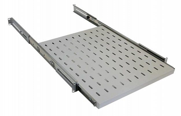 Полка 19", перфорированная выдвижная, 1U, глубина 450 мм, цвет серый, распределительная нагрузка 30 кг, 23x490x450 мм.