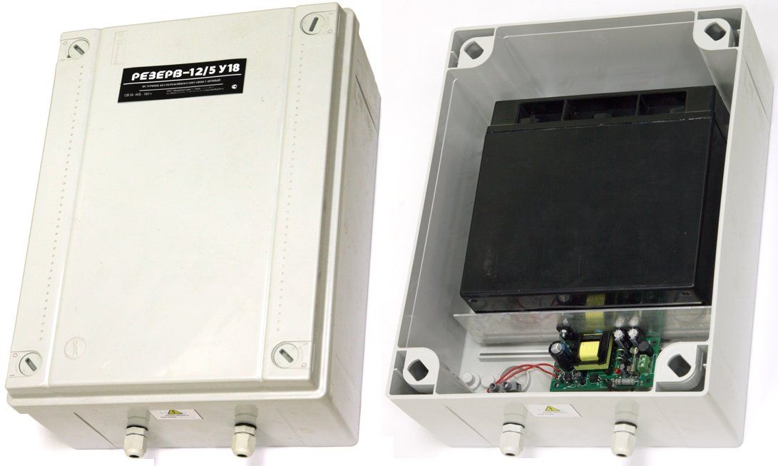 Источник вторичного электропитания резервированный импульсный РЕЗЕРВ-12/5У18 предназначен для обеспечения бесперебойного электропитания средств охранно-пожарной сигнализации, видеонаблюдения и других потребителей номинальным напряжением 12В постоянного тока.