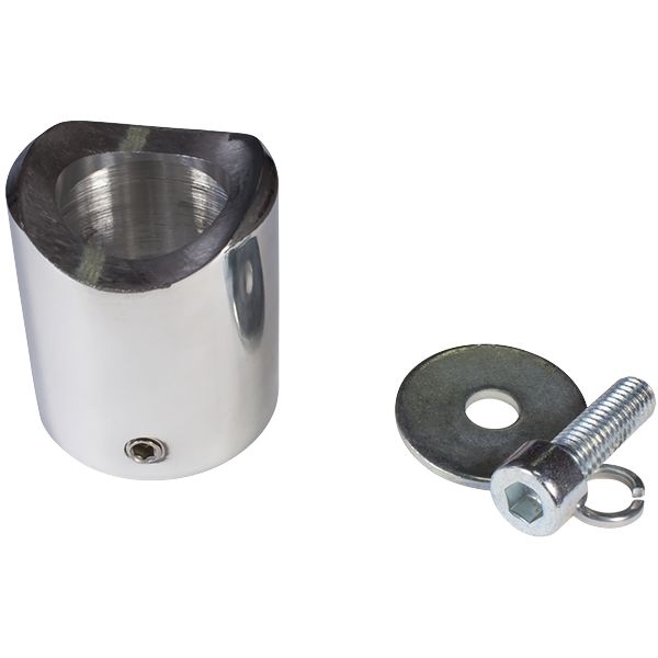 Хромированная муфта в сборе (с элементами крепления) для крепления к стойке стационарного или передвижного ограждения горизонтальной перемычки диаметром32мм.