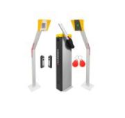 Комплект ограждения для роторного турникета со скругленной планкой "Люкс", состоит из четырех окрашенных стальных стоек диаметром 48-50 мм с унифицированными крепежными узлами (муфтами), двух опорных стоек диаметром 25 мм и двух гнутых горизонтальных хромированных перемычек диаметром 32мм. Внизу больших стоек расположены кожухи, под которыми находятся фланцы с тремя отверстиями диаметром 11мм для крепления ограждений к полу, в малых стойках имеются фланцы Joker.