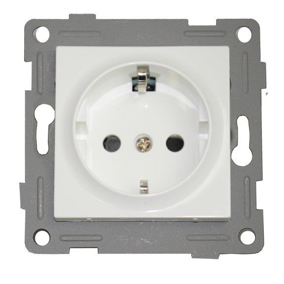 Розетка электрическая встраиваемая с заземлением; 1 пост; U-ном.220…250 В, I-ном.16 А. Цвет белый.