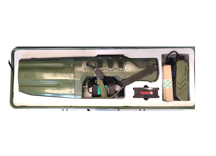 Ружье ПАРС-НУ5/6 - переносное устройство широкого спектра подавления частот координации БПЛА. Воздействует на диапазоны мобильной связи 2G(GSM), 3G(UMTS), 4G(LTE), 5G, спутниковой навигации (GPS, GLONASS, Galileo, BeiDou) и wifi (2,4 и 5 ГГц). Передатчик мощностью излучения 80 Вт глушит сигнал управления дроном, тем самым активируя режим "самоспасения". Дистанция эффективного применения до 500 м. Встроенного аккумулятора хватает до одного часа автономной работы. Комплектация предусматривает дополнительную батарею и защитный кейс для транспортировки. Система противодействия БЛА выполнена в виде ружья массой 6,5 кг и размерами 90х26х14 см. Такое исполнение удобно для оперативного развертывания и применения.