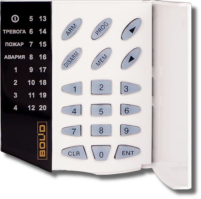 Пульт и клавиатура со светодиодными индикаторами на 20 охранных или пожарных зон