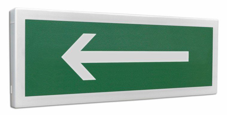 Оповещатель световой адресный "Стрелка влево". Питание от С2000-КДЛ и от внешнего источника питания 12...24 В, IP41, t-раб.-30...+55°С, 303×112×33 мм