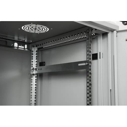 В комплекте идут монтажные вертикальные направляющие для крепления стандартного 19 дюймового оборудования. Направляющие пронумерованы в соответствии с количеством юнитов, для упрощения процесса монтажа. Направляющие регулируются по глубине. Доступ к оборудованию, устанавливаемому в шкафу, может осуществляться с трёх сторон. Шкаф поставляется в разобранном виде, цвет шкафа RAL 7035 (серый).