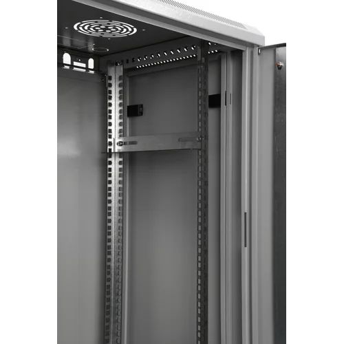 Дверь шкафа стеклянная, стекло 5 мм и поставляется с замком. Установка двери возможна как с правой, так и с левой стороны. Замок защищает от нежелательного доступа третьих лиц в шкаф. Боковые панели шкафов - легкосъемные для упрощения доступа к установленному оборудованию, снабжены защелками.