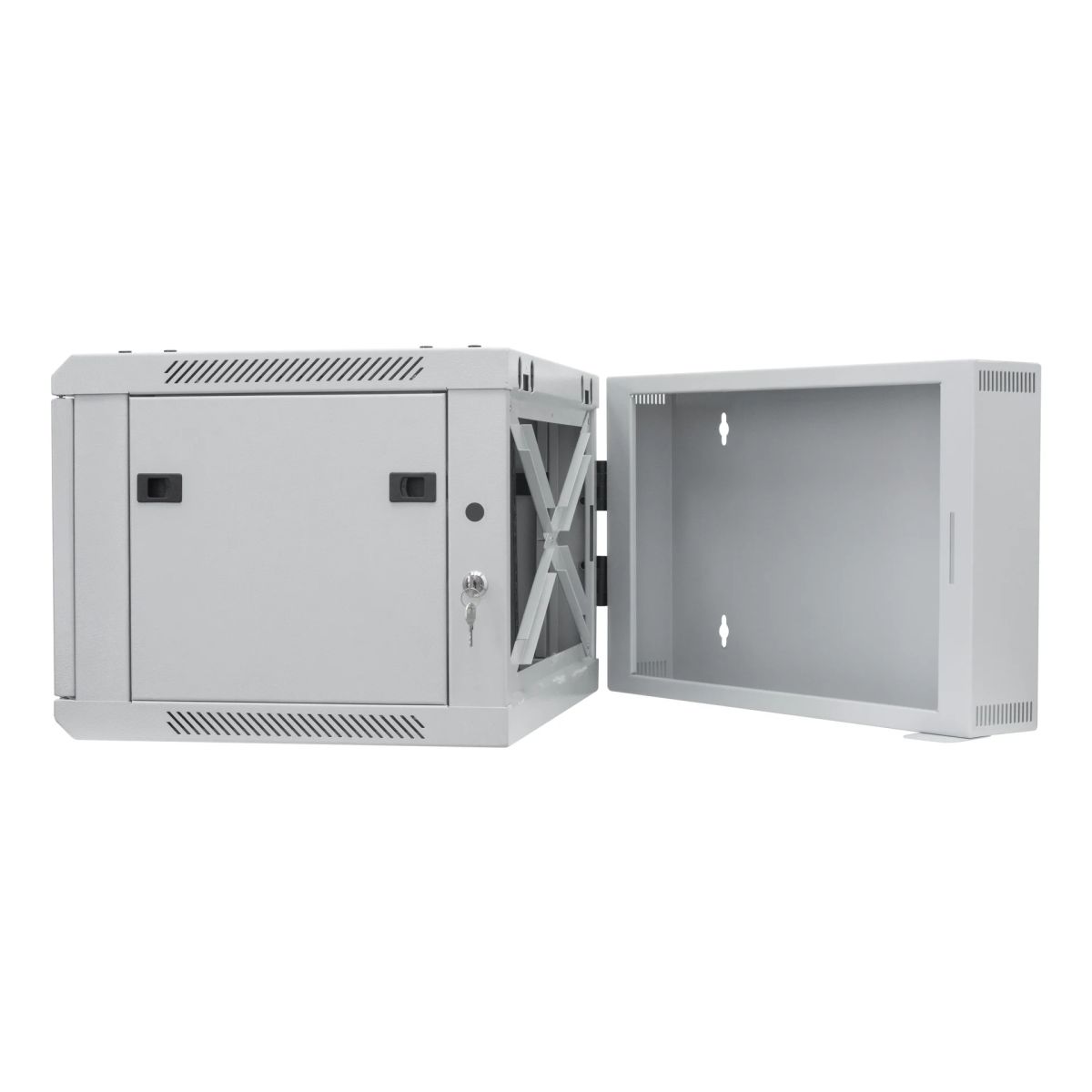 Дверь шкафа металлическая и поставляется с замком. Установка двери возможна как с правой, так и с левой стороны. Замок защищает от нежелательного доступа третьих лиц в шкаф. Боковые панели шкафов - легкосъемные для упрощения доступа к установленному оборудованию, снабжены защелками.