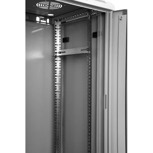 В комплекте идут монтажные вертикальные направляющие для крепления стандартного 19 дюймового оборудования. Направляющие пронумерованы в соответствии с количеством юнитов, для упрощения процесса монтажа. Направляющие регулируются по глубине. Доступ к оборудованию, устанавливаемому в шкафу, может осуществляться с трёх сторон. Шкаф поставляется в разобранном виде, цвет шкафа RAL 7035 (серый).