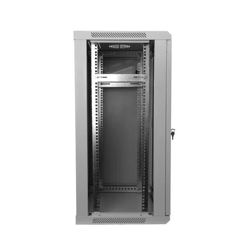 Дверь шкафа стеклянная, стекло 5 мм и поставляется с замком. Установка двери возможна как с правой, так и с левой стороны. Замок защищает от нежелательного доступа третьих лиц в шкаф. Боковые панели шкафов - легкосъемные для упрощения доступа к установленному оборудованию, снабжены защелками.