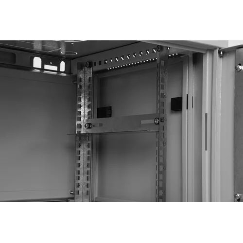 Дверь шкафа стеклянная, стекло 5 мм и поставляется с замком. Установка двери возможна как с правой, так и с левой стороны. Замок защищает от нежелательного доступа третьих лиц в шкаф. Боковые панели шкафов - легкосъемные для упрощения доступа к установленному оборудованию, снабжены защелками.