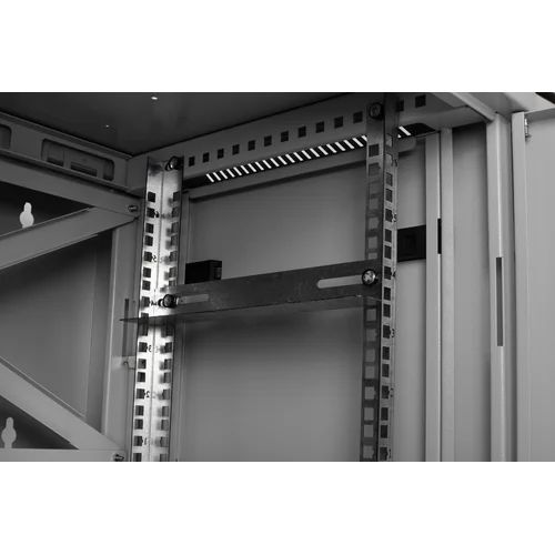 В комплекте идут монтажные вертикальные направляющие для крепления стандартного 19 дюймового оборудования. Направляющие пронумерованы в соответствии с количеством юнитов, для упрощения процесса монтажа. Направляющие регулируются по глубине. Доступ к оборудованию, устанавливаемому в шкафу, может осуществляться с четырёх сторон. Шкаф поставляется в разобранном виде, цвет шкафа RAL 7035 (серый).