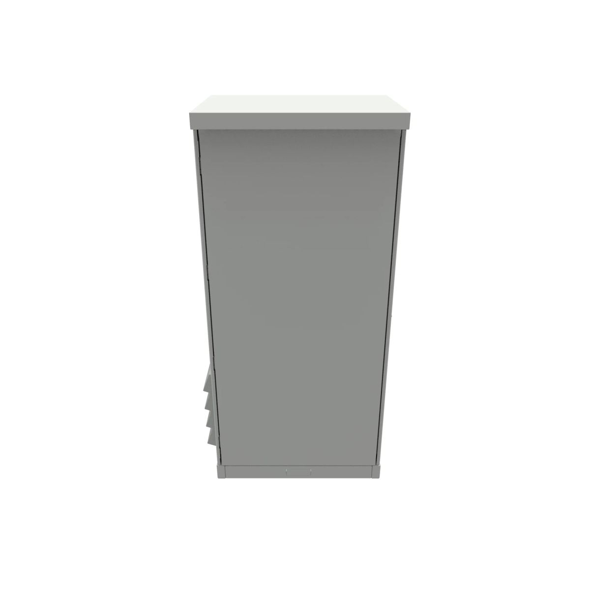 Корпус шкафа имеет сварную металлическую конструкцию, внутри покрыт термоизоляционным негорючим материалом. В основании шкафа предусмотрена съемная заглушка для ввода кабеля. Регулируемые по глубине 19'' направляющие толщиной 2 мм.