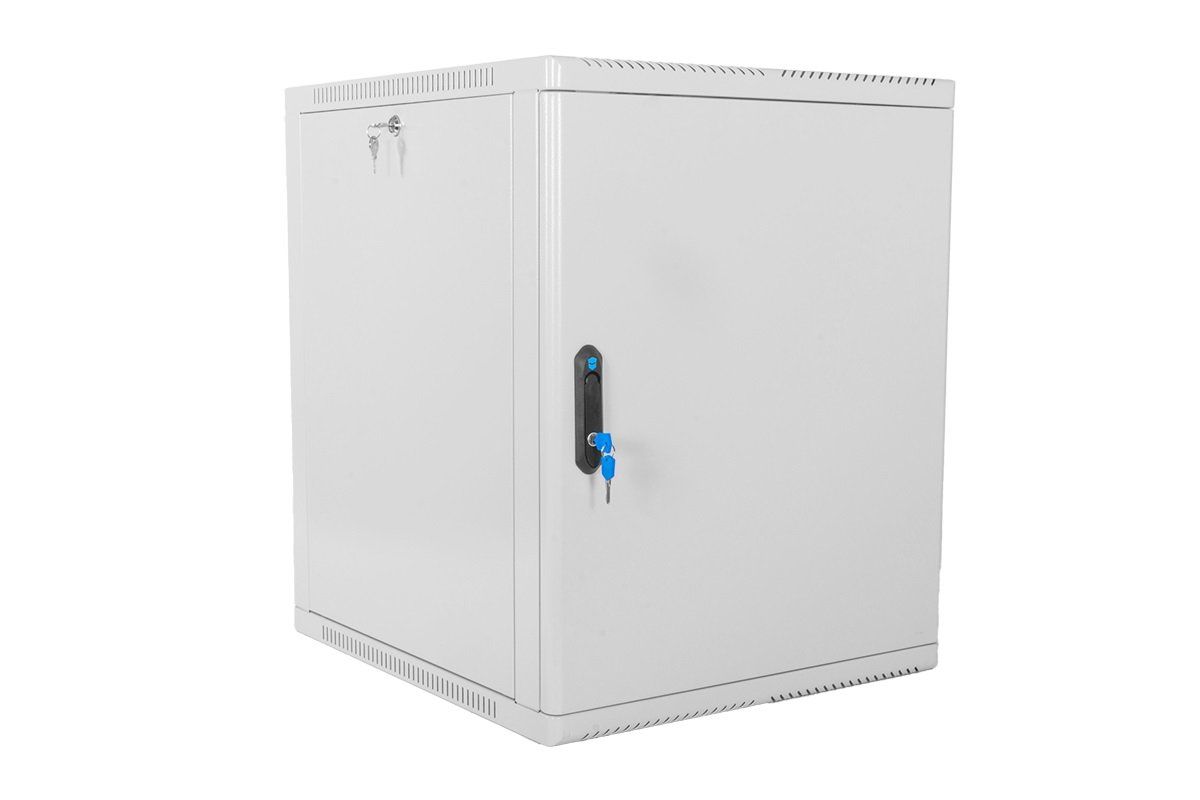 Шкаф телекоммуникационный настенный 19", 12U, дверь металл, полезная глубина 300 мм, съемные стенки, распределенная нагрузка 200 кг, цвет серый, 612х600х360 мм.