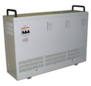 Стабилизатор напряжения трехфазный релейный (ступенчатый принцип стабилизации), чистая синусоида; P-вых.30 кВА (сумм.); P-нагр.10 кВА(фазная), U-вх.380 В, U-вых.380 В; IP30, t-раб.+1…+40°C. В комплекте три блока стабилизации и блок коммутации.
