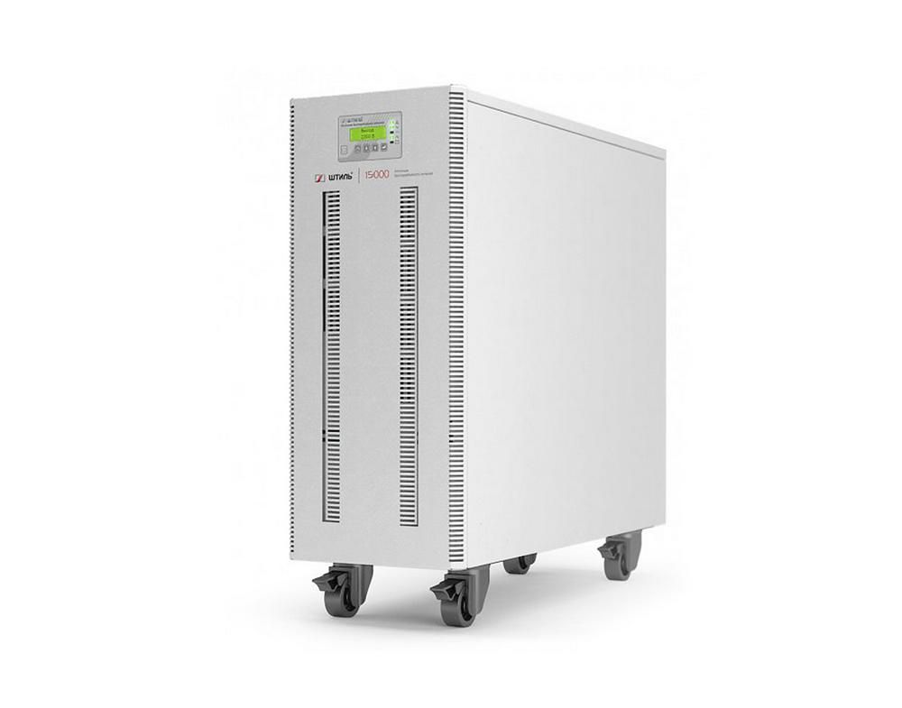Источник бесперебойного питания напольный, on-line (с двойным преобразованием), чистая синусоида, 15000 ВA (12000 Вт), U-вых.220 В; U-вх.380 В; под внешние аккумуляторы, U-акб.192 В, I-заряд.2 А; ЖК-дисплей, звуковая индикация; выходные разъёмы - клеммы L, N; холодный старт; IP20, t-раб.+5...+40°C, 190х542х500 мм