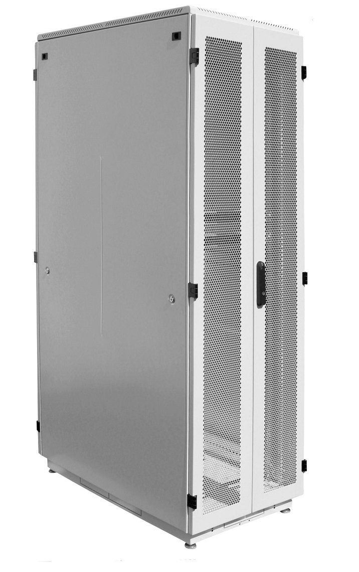 Шкаф телекоммуникационный 19'' напольный, 42U, двери передняя и задняя двойные перфорированные, площадь перфорации двери 61%, ручка с замком, распределенная нагрузка 1200 кг, полезная глубина 1055 мм, цвет серый, разобранный, 2048x800х1225 мм.