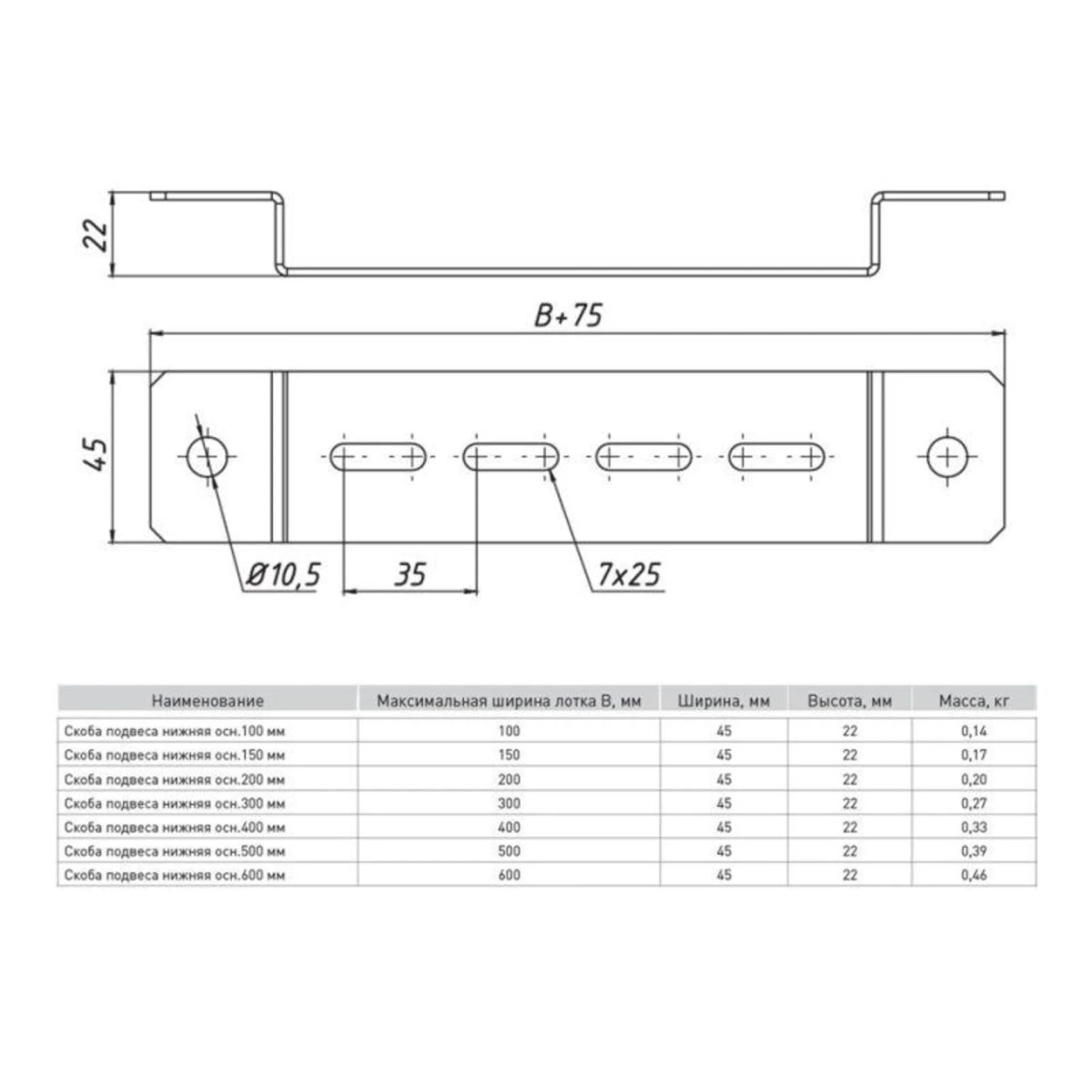 Скоба подвеса нижняя 100мм 2мм HDZ EKF pn100-HDZ